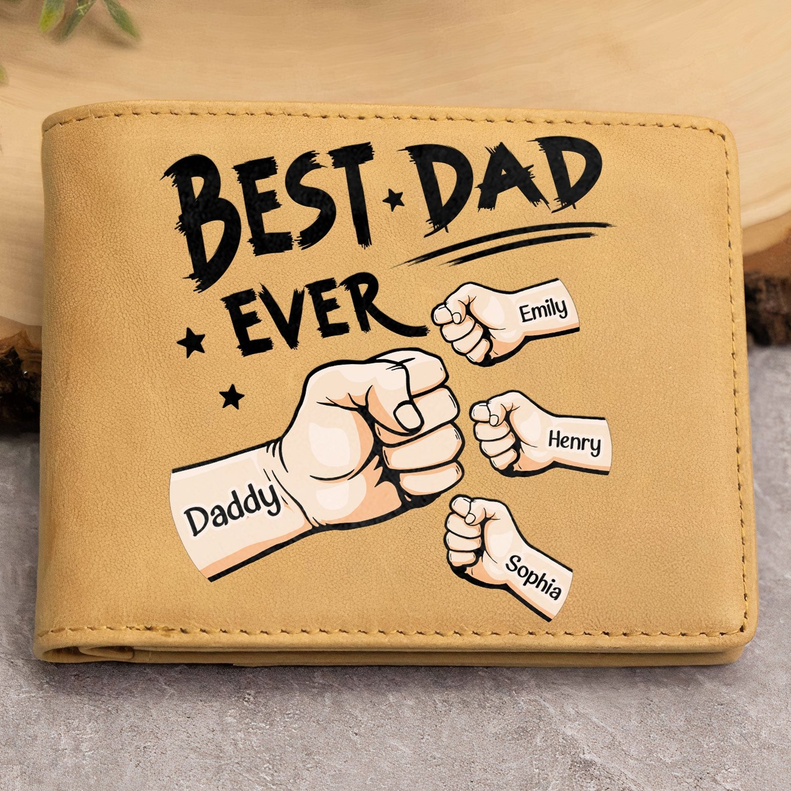 Get ready to pack a punch of appreciation with the "Best Dad Ever" Wallet! This isn’t just a wallet; it’s a superhero’s utility belt, celebrating the strength and love of fathers everywhere. Designed to carry the essentials, it’s embossed with an endearing and powerful statement that packs a sentimental wallop – "BEST DAD EVER" – accompanied by personalized, playful fists representing his kids who think he’s the champion of the world.