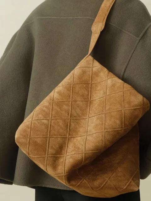 Brand Suede Bucket Bag Women’s 2026 Large Capacity Tote Bag Shopping Bag Armpit Hand