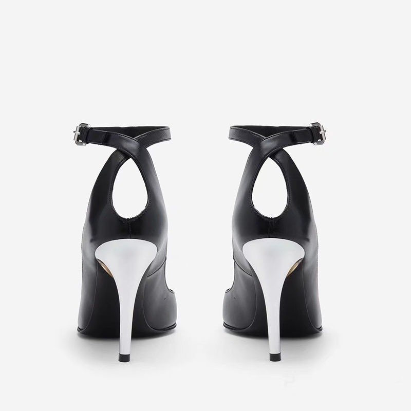 Genuine leather belt buckle with slim high heels and elegant hollow out high heels
