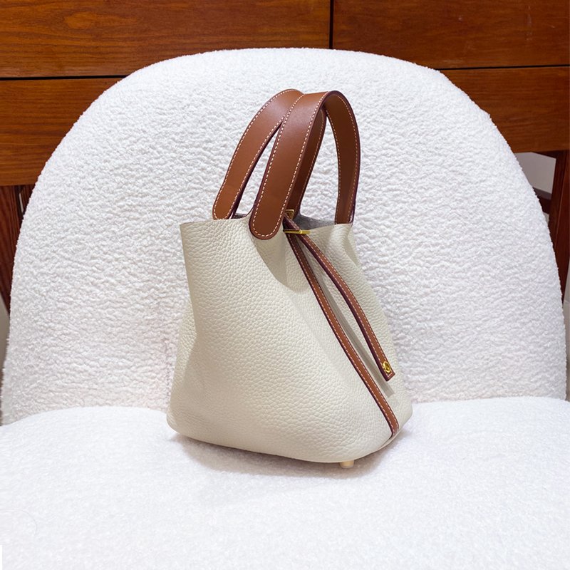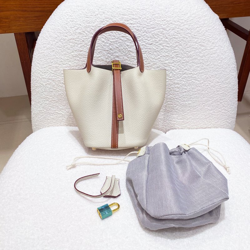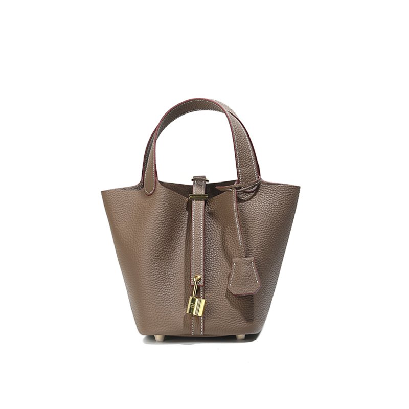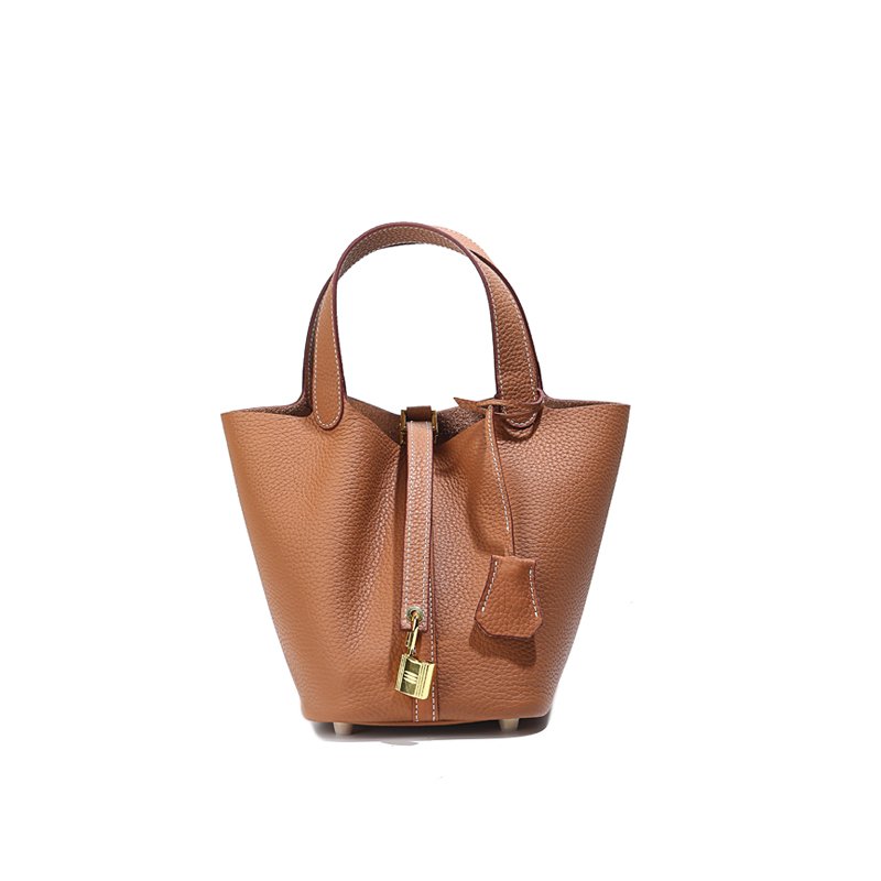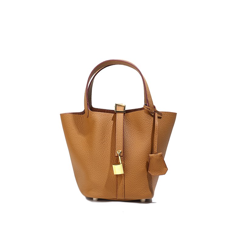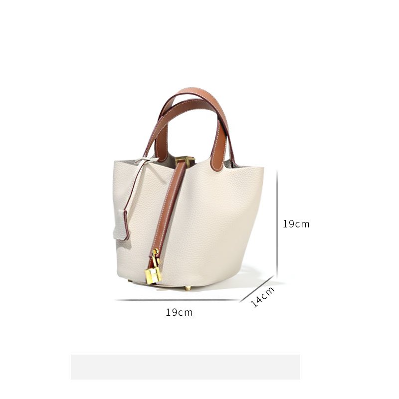 Be the first to review “New leather women’s bag classic fashion vegetable basket bag simple first layer cowhide bucket bag lock hand bag”