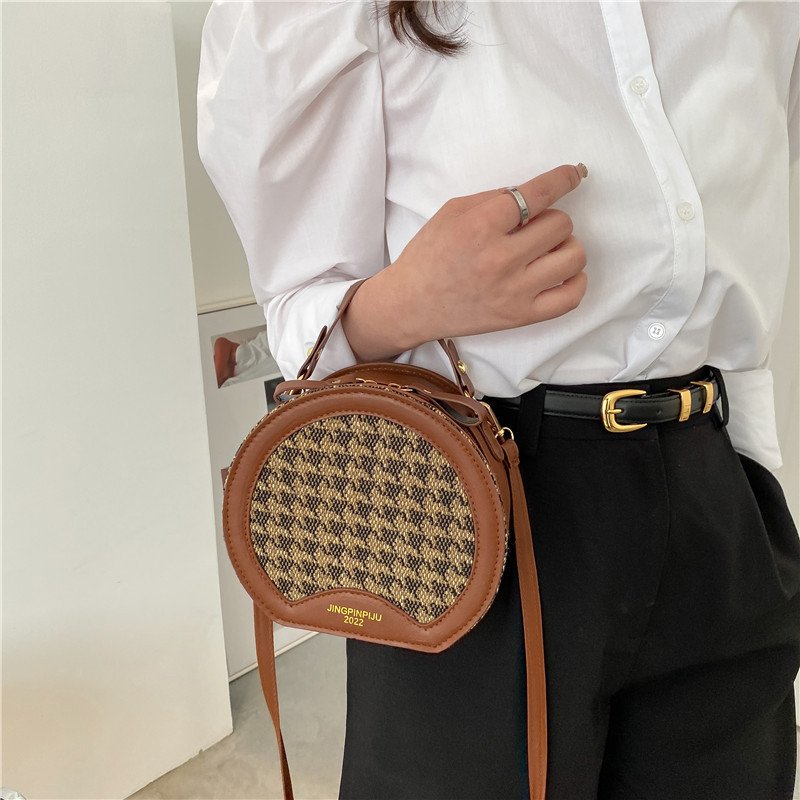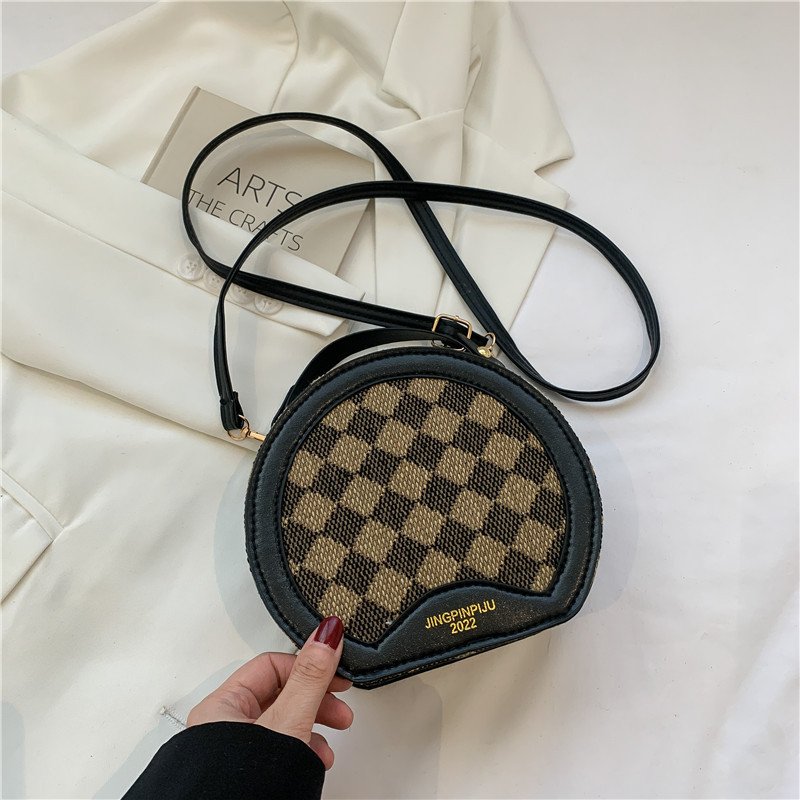 Plaid Hand Carry Messenger Small Bag Female Spring And Summer New Trendy Simple Shoulder Bag Hand-Held Small Round Bag
