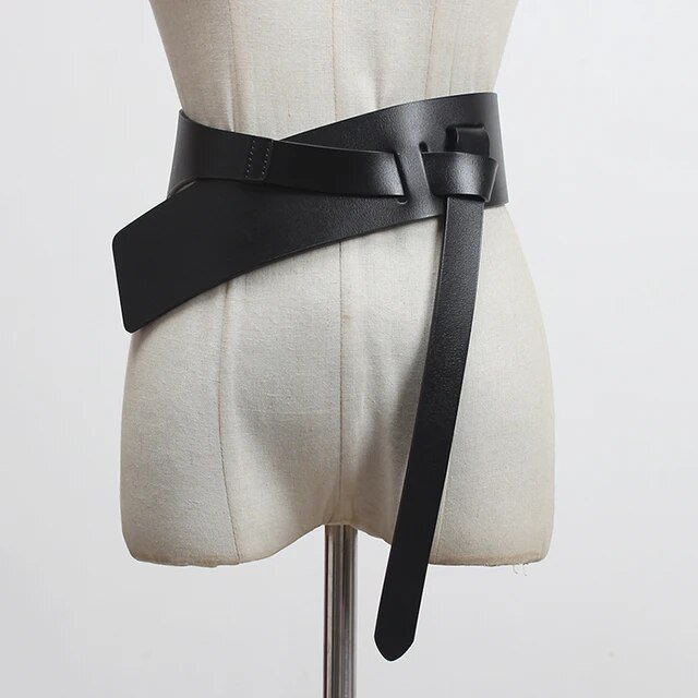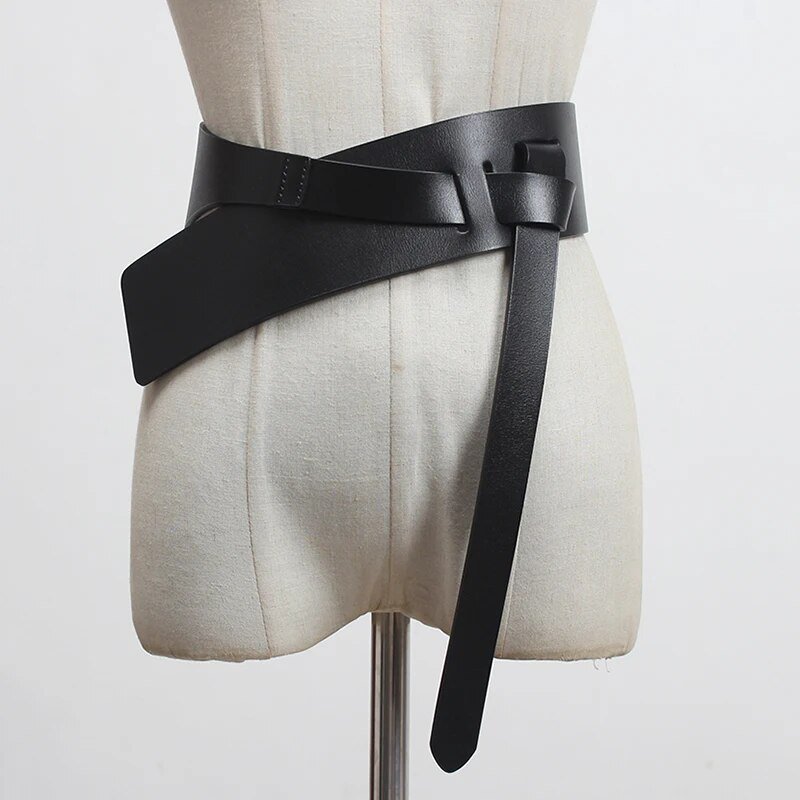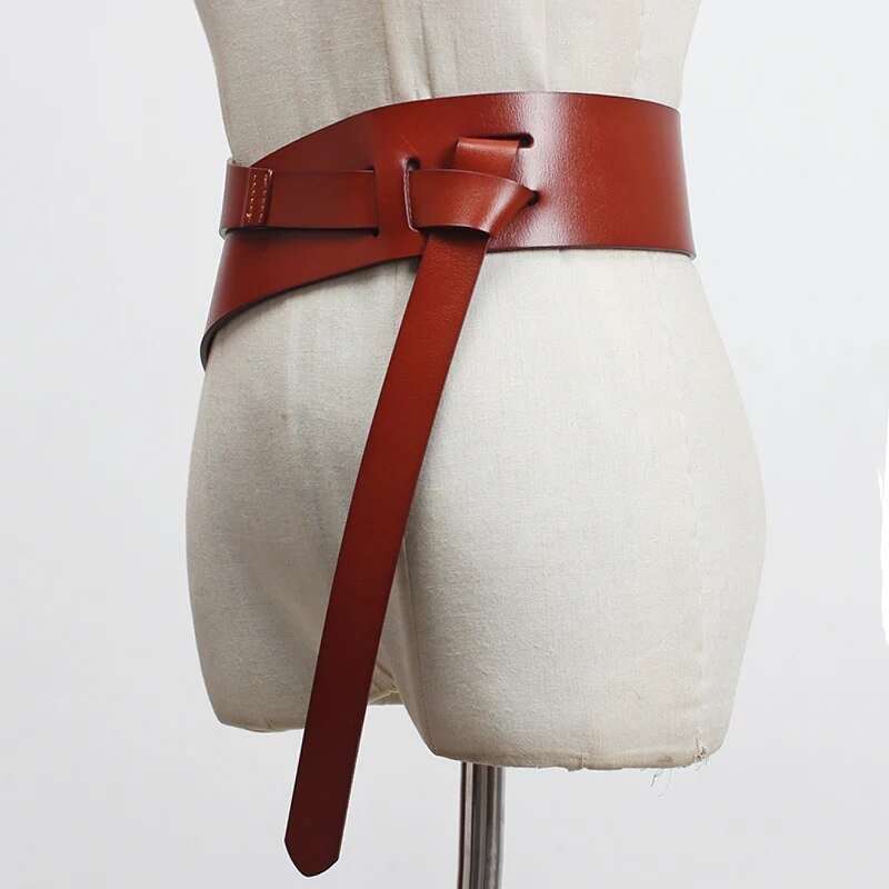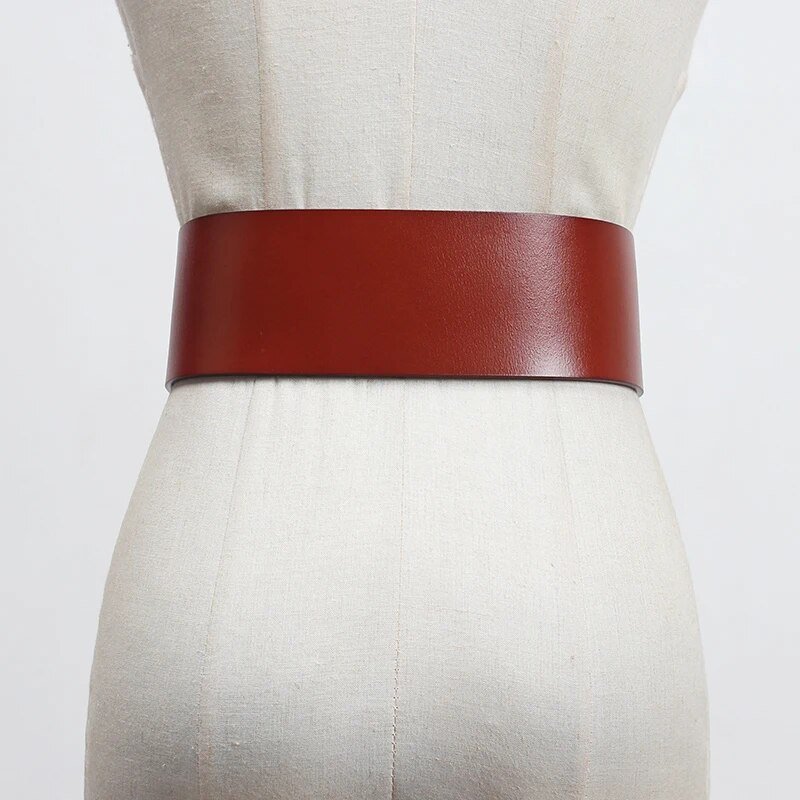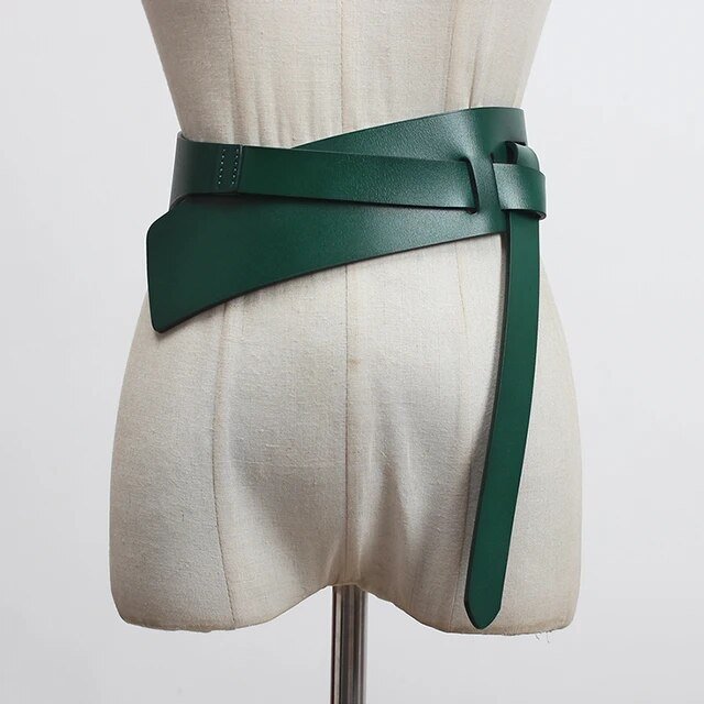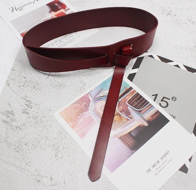 Pu Leather Wine Red Irregular Long Wide Belt