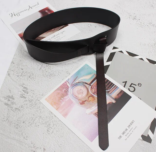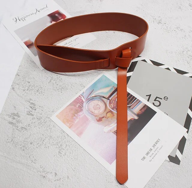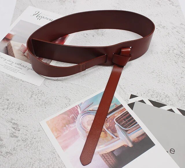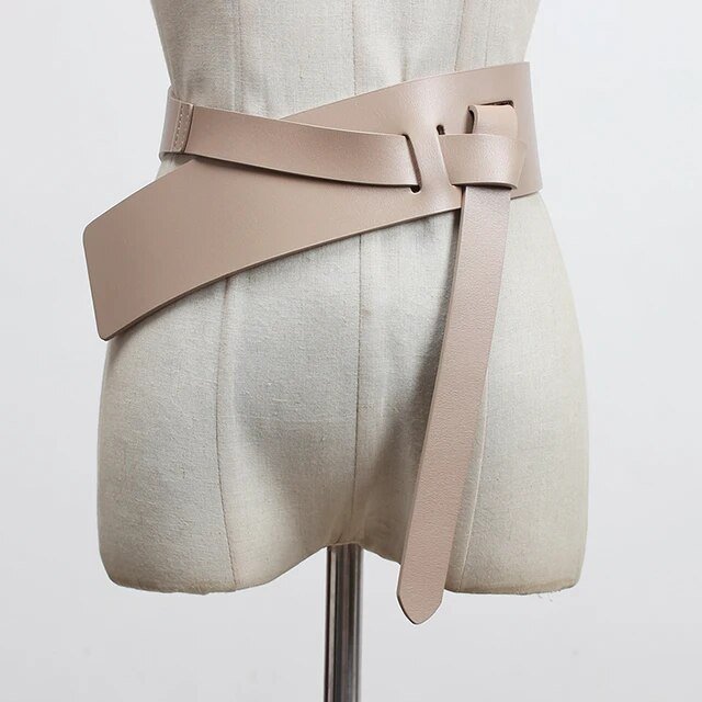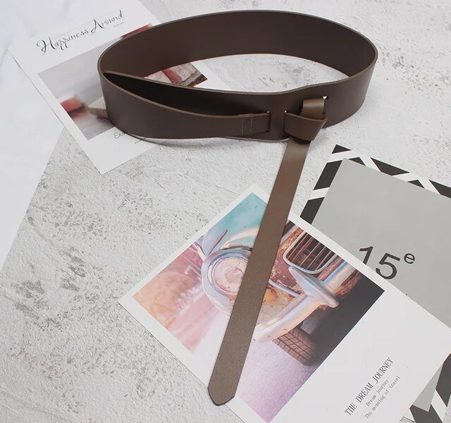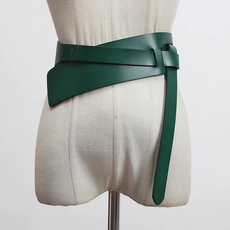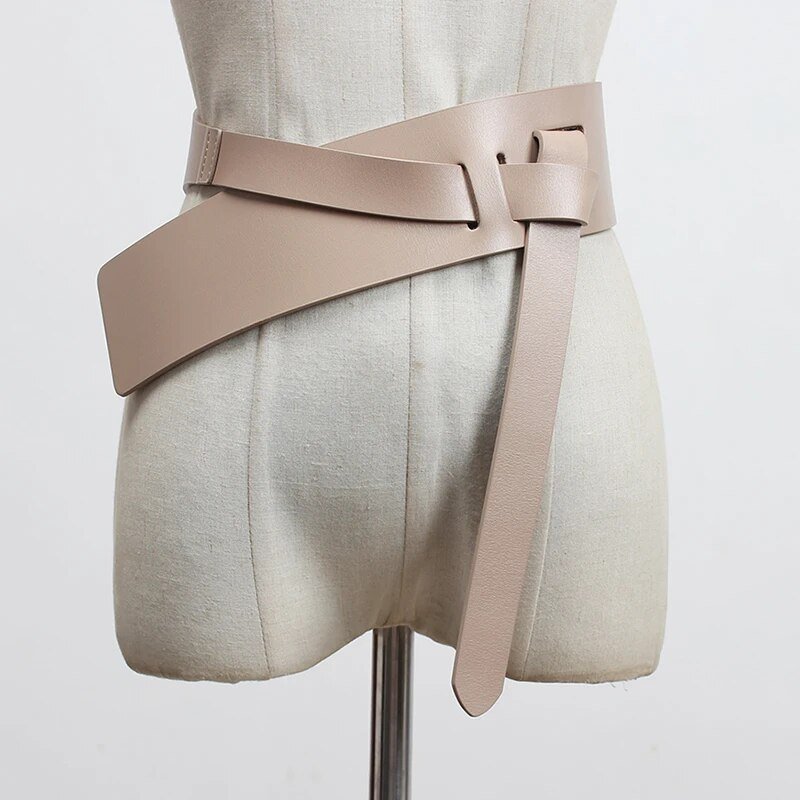 Pu Leather Wine Red Irregular Long Wide Belt