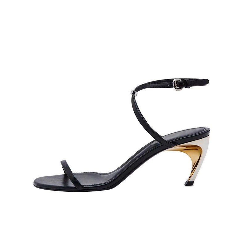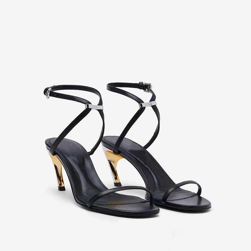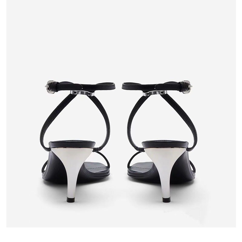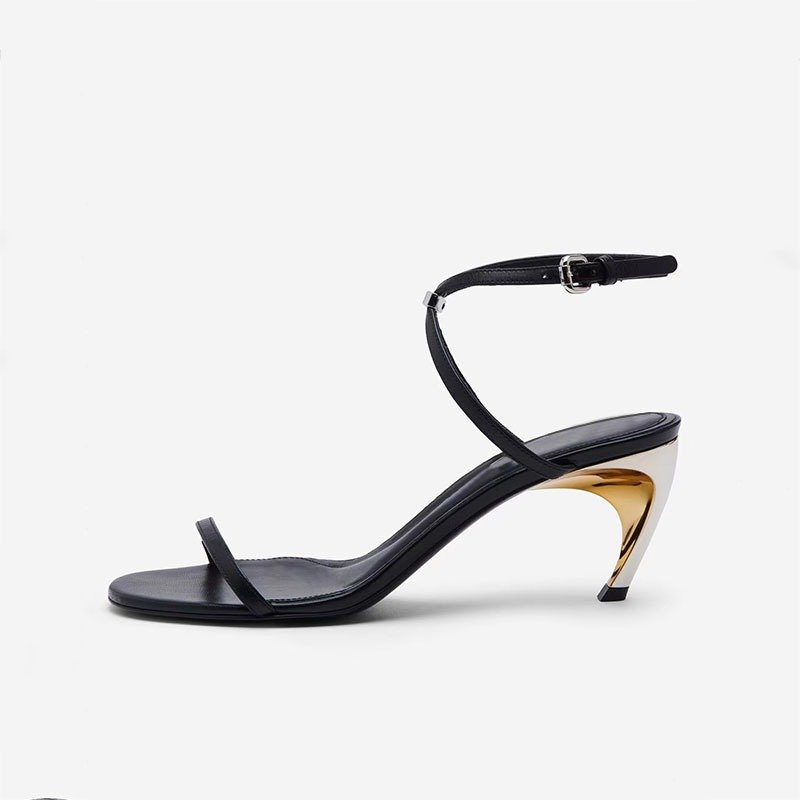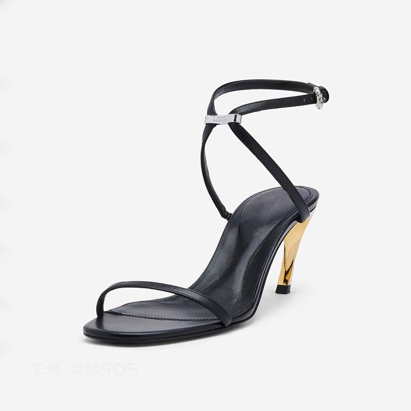Round toe open toe shaped heel genuine leather sandals with European and American style belt buckle